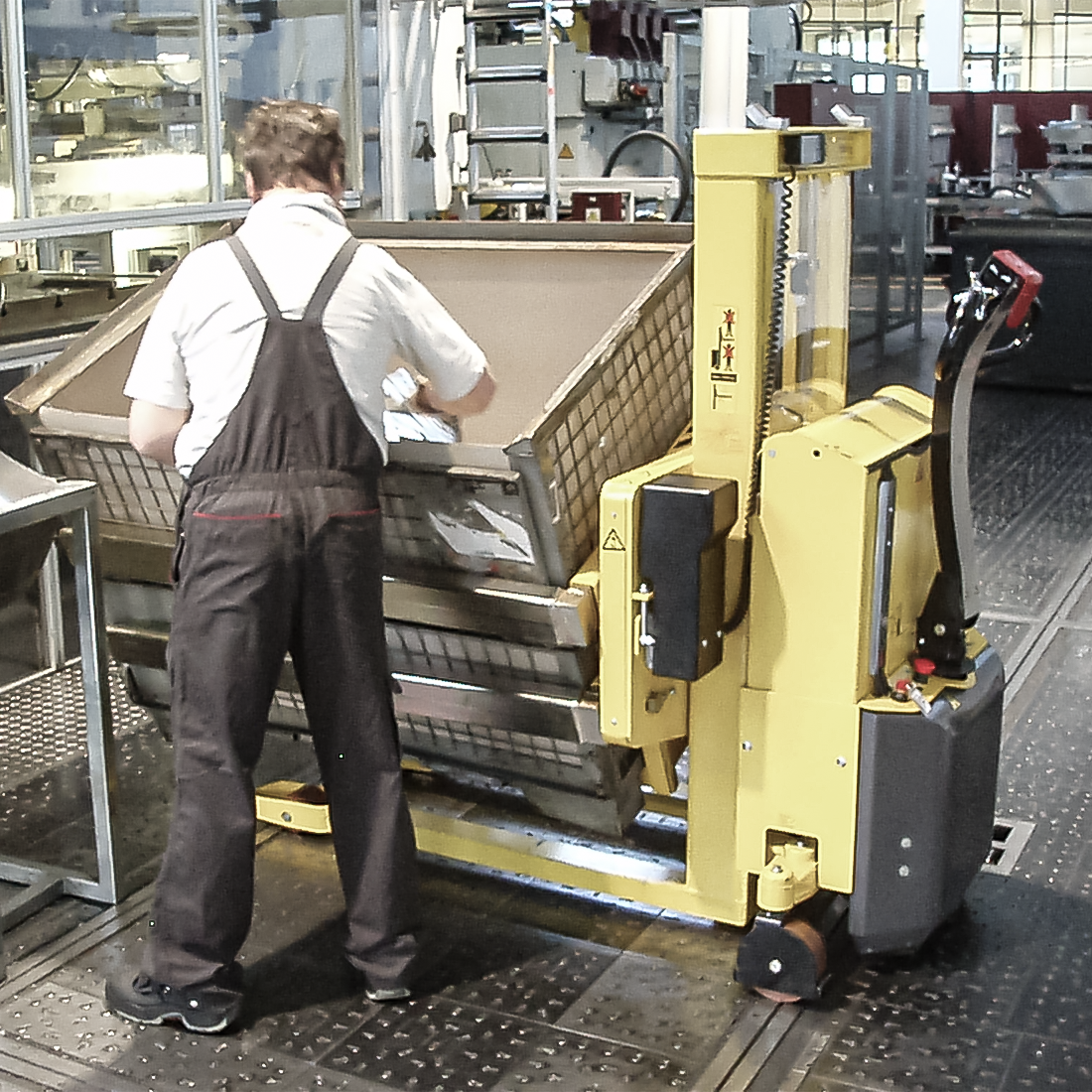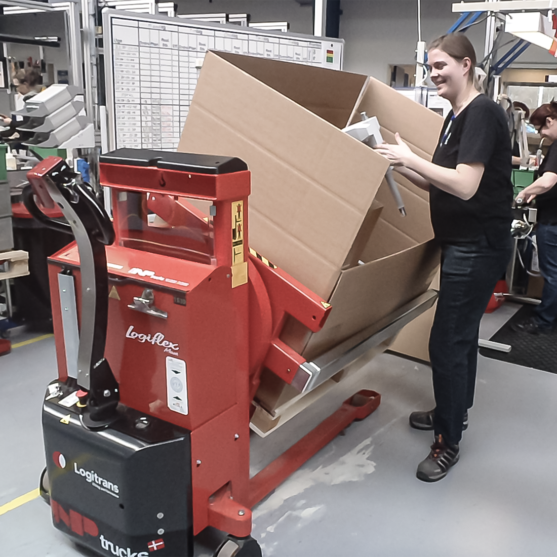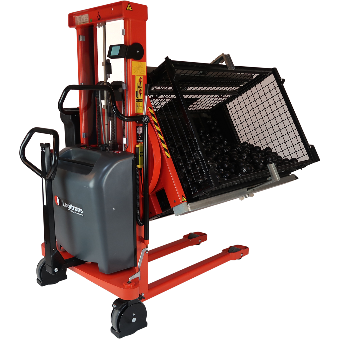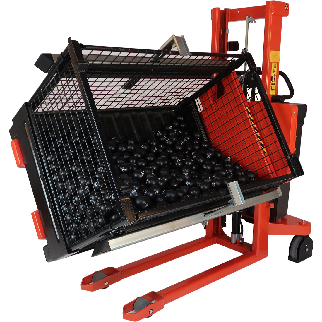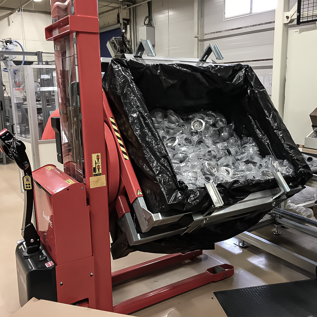 Rotatoren kan vippe kasser, så du som bruger kan nå indholdet uden at strække dig og belaste din ryg. Kassen kan også vendes med bunden i vejret, så den tømmes fuldstændigt.