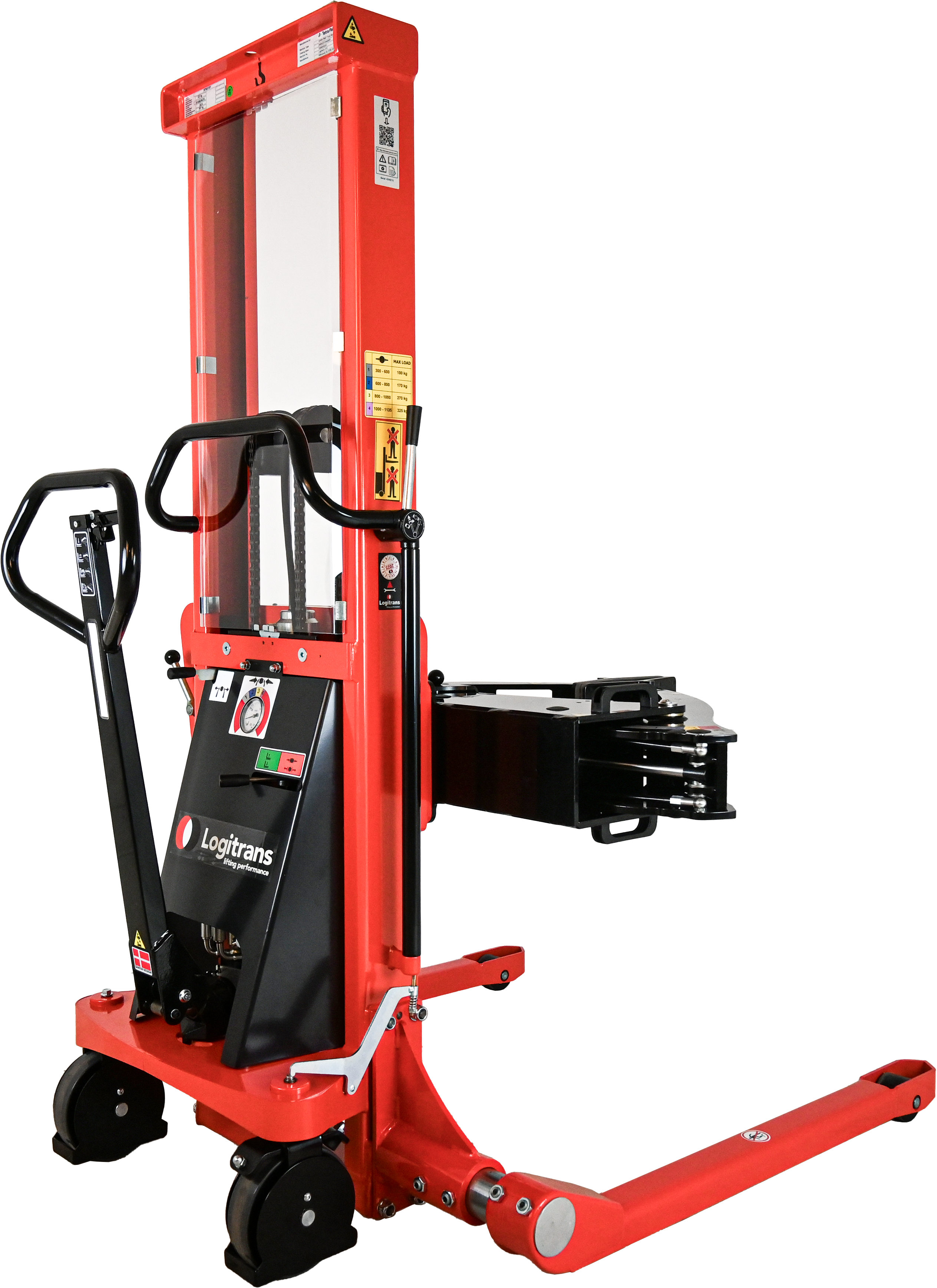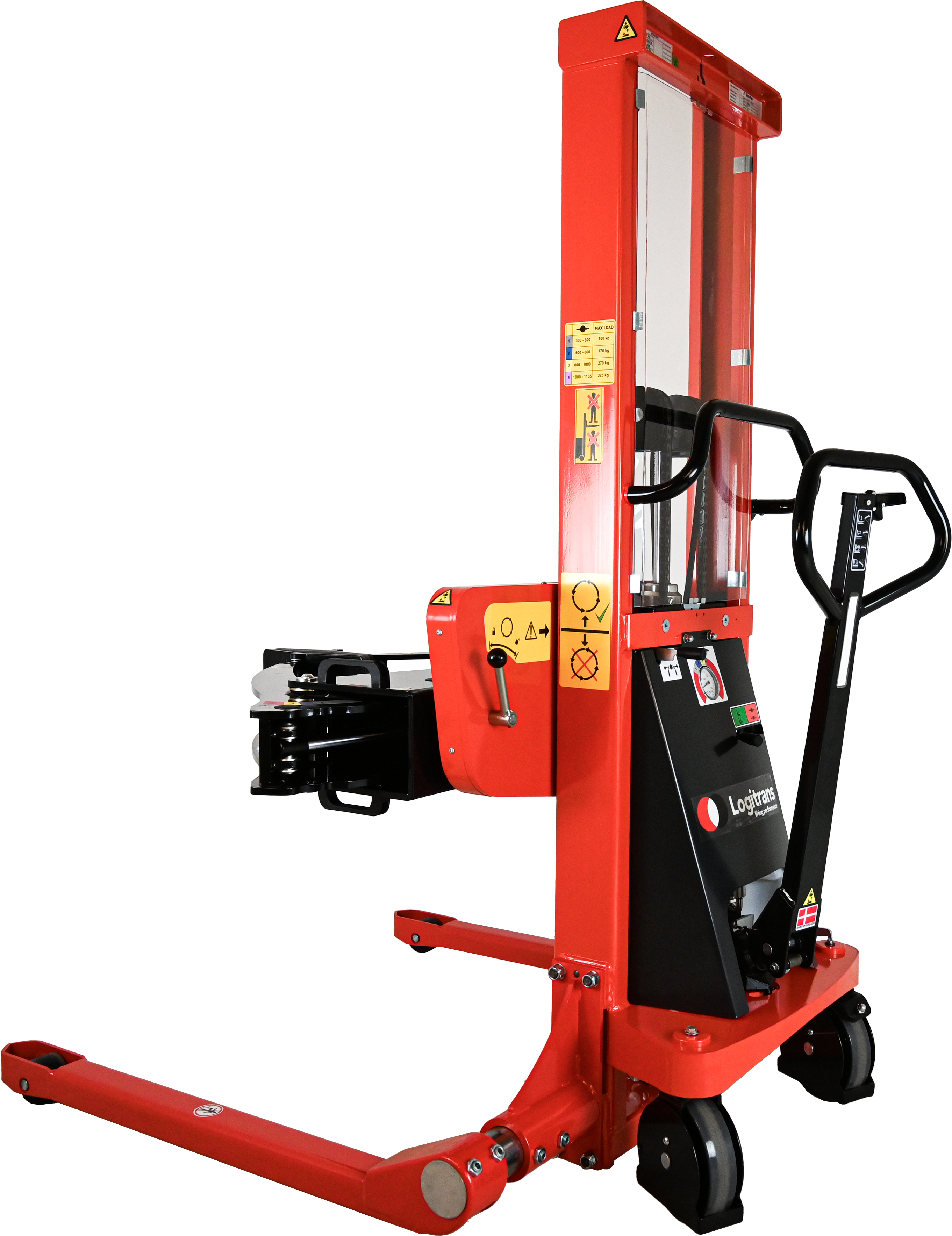 If you need to lift and rotate heavy reels, e.g. placed on closed pallets, the manual reel rotator with straddle legs might be the right solution for you. It can grab and place reels placed on all types of pallets.